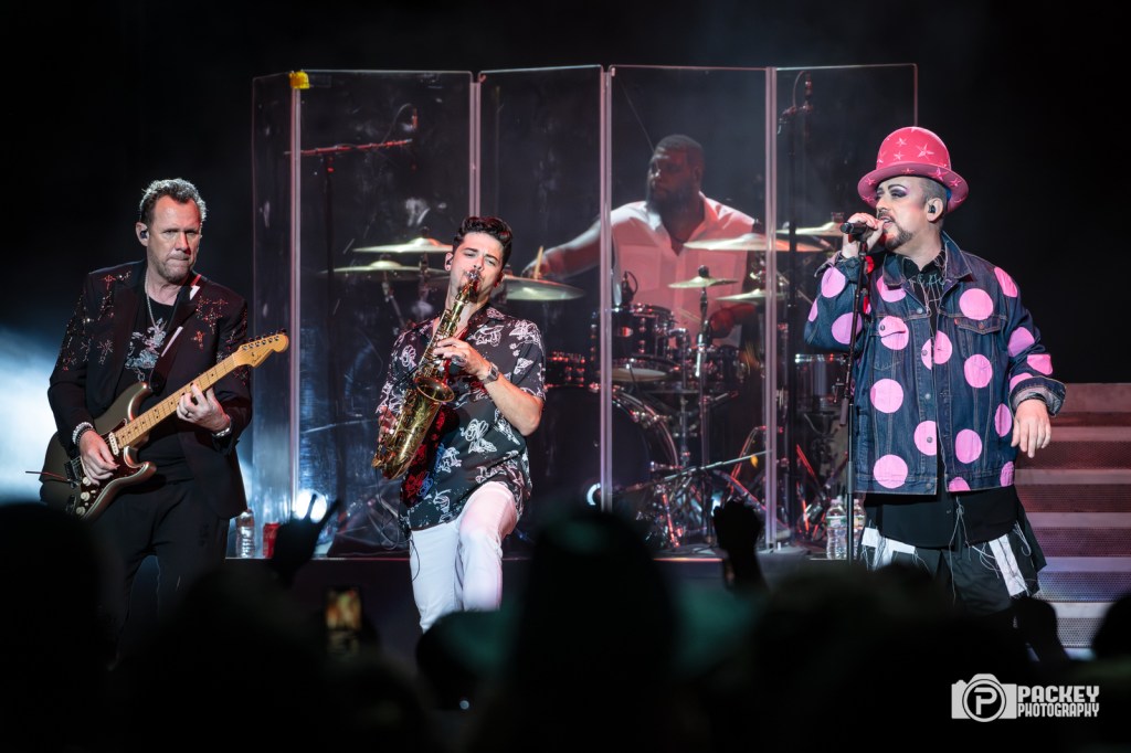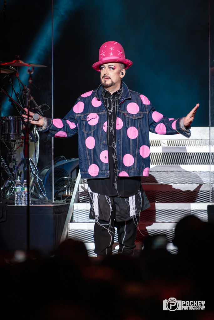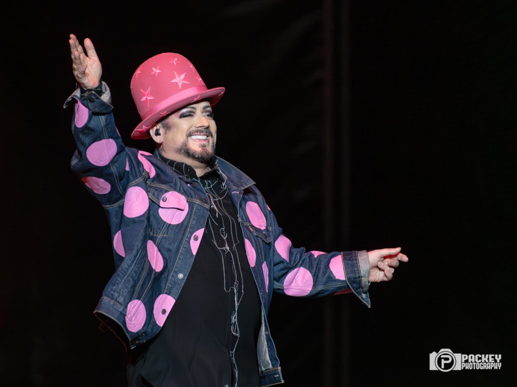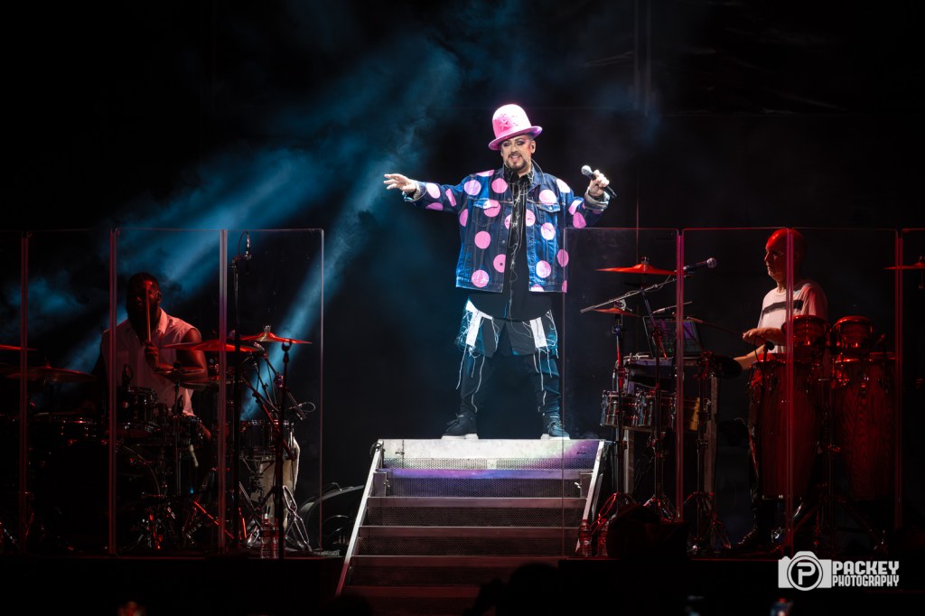 And then, the moment I had been waiting for since I was a kid, Boy George walked out on stage. He paused for a moment at the top of a set of stairs, dressed in bold pink polka dots and a matching pink star hat, proving he is still the style icon we all know him to be. Making his way down the stairs, he started the evening’s Culture Club set with Next Thing Will Be Amazing, and following with the top hits of It’s a Miracle and I’ll Tumble 4 Ya. For fans of The Voice, you will be happy to know that one of Boy George’s mentees, Vangelis Polydorou, was still working alongside George as one of the evening’s backup singers. For the rest of the night, the crowd was on its feet, singing along to lyrics we’ve all known by heart for 40 years. Once we all finished our version of Miss Me Blind, Culture Club left the stage, only to reappear after Boy George’s wardrobe change for their encore. Now clad in yellow polka dots and a matching yellow hat, the band performed their cover of Sympathy for the Devil, followed by Karma Chameleon, and ending with a hugely energetic cover of Get It On.