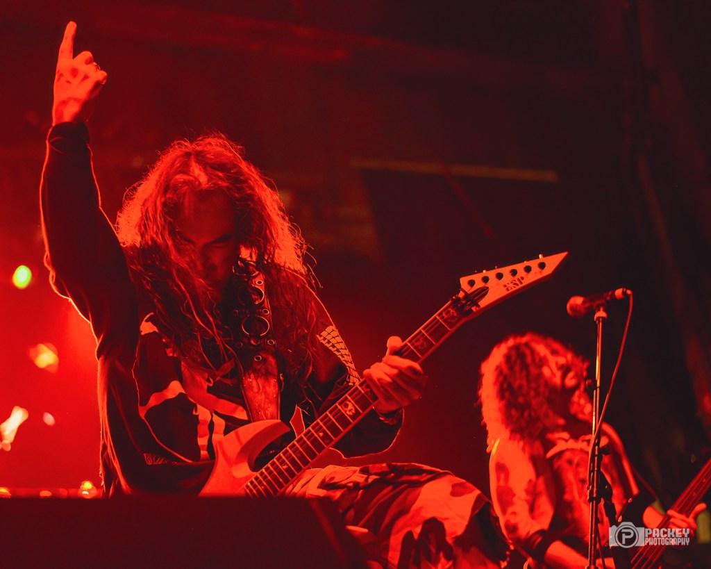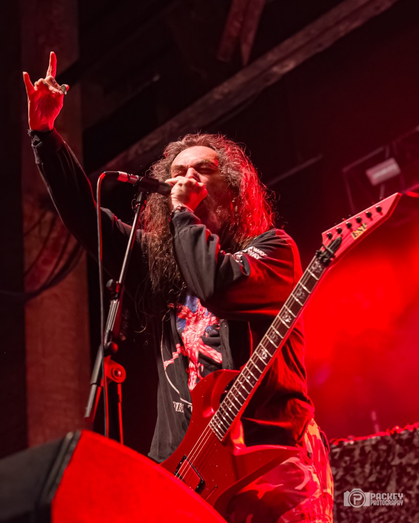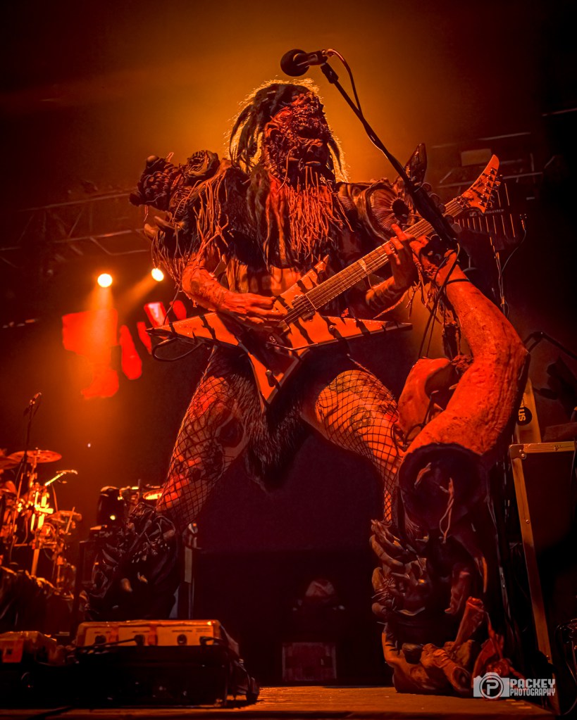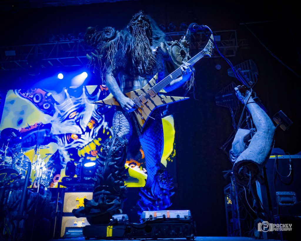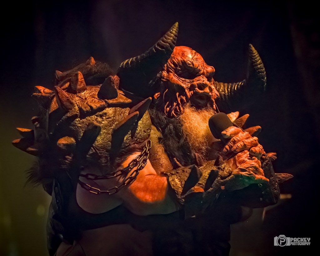 About halfway through the set, singer Blöthar the Berserker called Trump a pedophile, which seemed to piss off a couple of men in the crowd who made their displeasure known… loudly. This surprised me a little bit because what concert did they think they were going to? Gwar have been very clear on their opinions about Trump. But, they didn’t end with Trump. Not in the slightest. The evening encompassed the symbolic deaths portraying caricatures of many important cultural figures, including a priest getting creepy with children, an ICE agent tasering a small child, and Bill Clinton who, upon finding himself in the Epstein files, said, “Dear Epstein Files. I never believed this could happen to me.” Like the others, he was decapitated and his blood soaked the audience, much to their very damp glee.