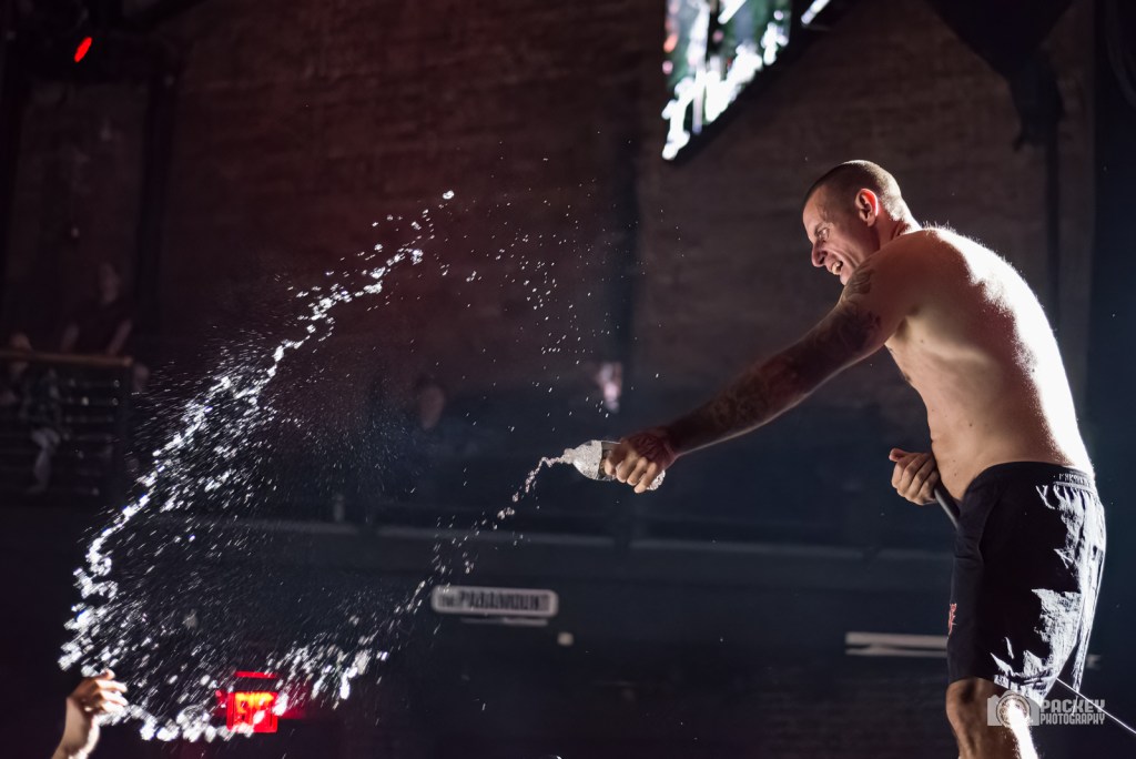 The night opened with the aggressive grindcore band, King Parrot. Singer Matt Young set the tone for the evening with his high energy, bouncing around the stage and throwing water on to the crowd. They played a short set that included Shit on the Liver and ended with Fuck You and the Horse You Rode In On, which definitely got the crowd warmed up for what was to come.